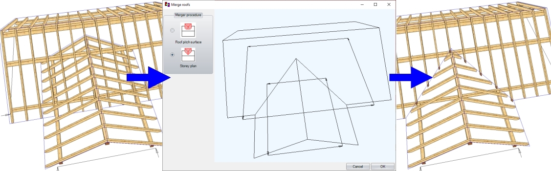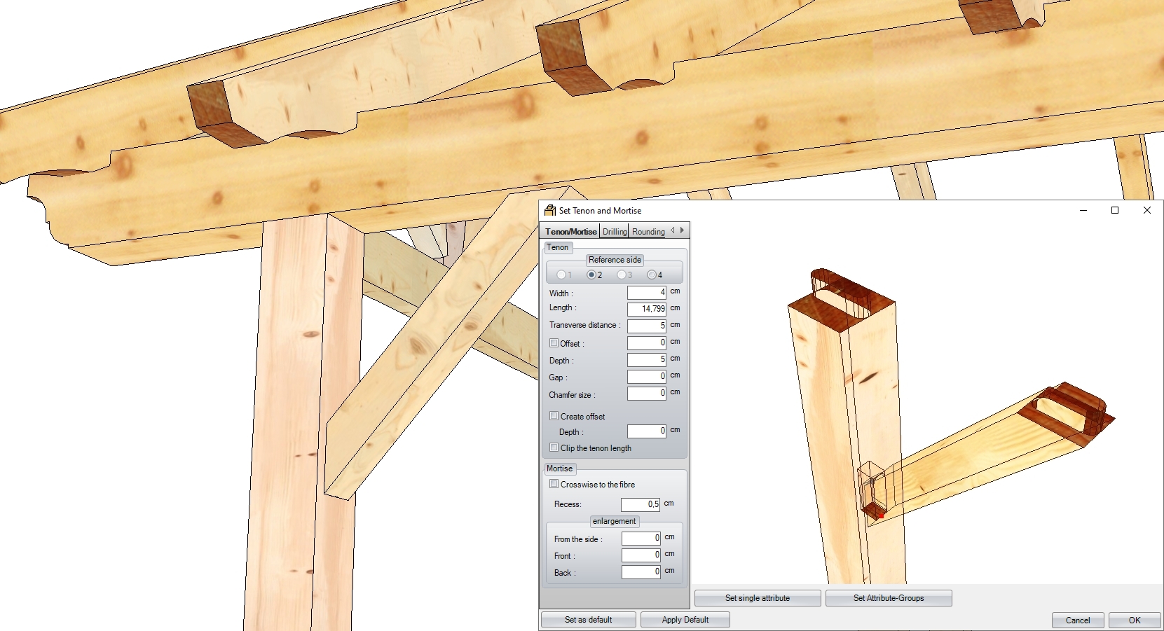 Slutligen kan du sammanfoga de ritade konstruktionerna med fogar som sträcker sig från enkel styrd kapning till tapp- och tapphål, liksom krokskarvar eller steg-/hälurtag som används i takstolar. Du kan även rita (och anpassa) stålbalkar.