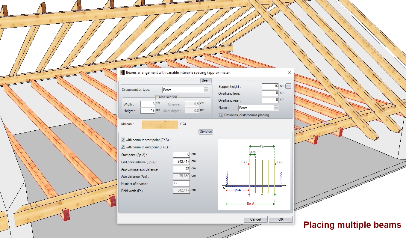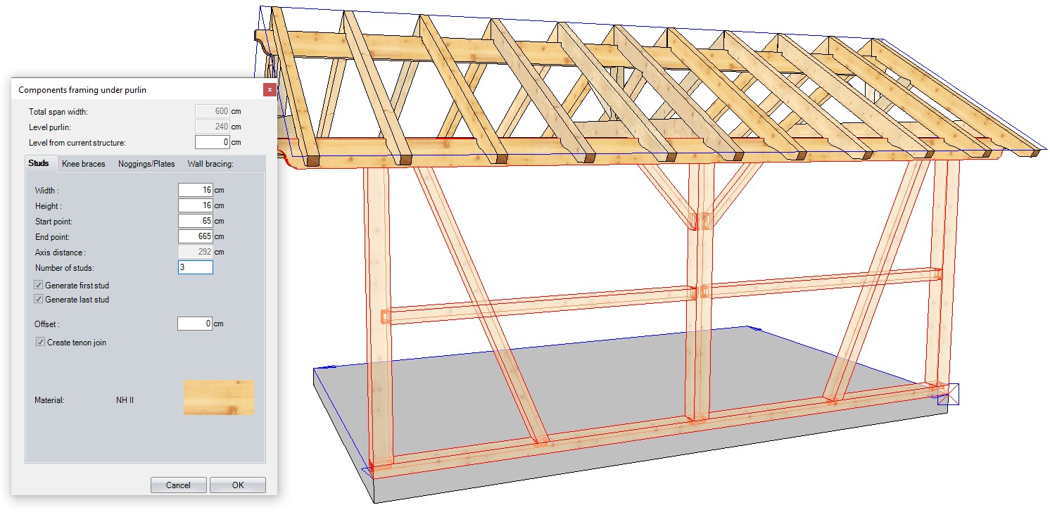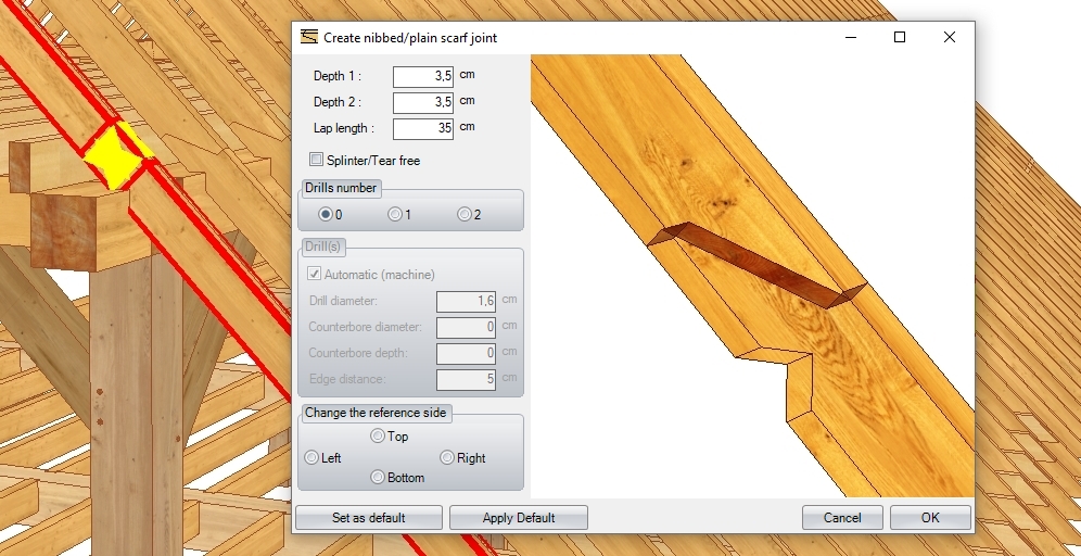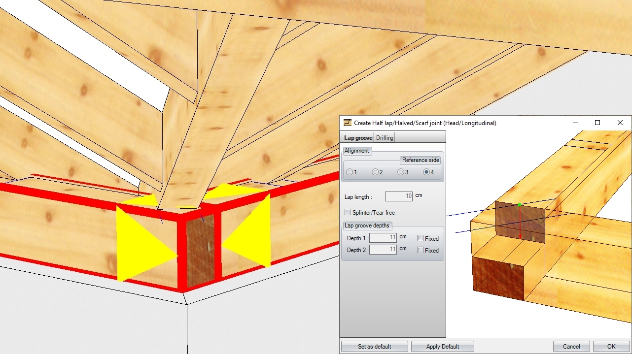 Slutligen kan du sammanfoga de ritade konstruktionerna med fogar som sträcker sig från enkel styrd kapning till tapp- och tapphål, liksom krokskarvar eller steg-/hälurtag som används i takstolar. Du kan även rita (och anpassa) stålbalkar.