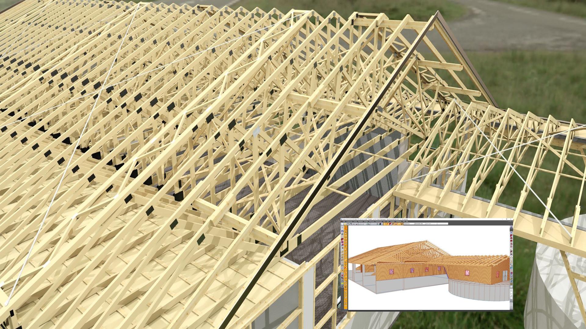 Carpenters, roofers, joiner, craftsman for wood assembly craftsman for wood assembly, sawmill operators, designers and other timber business professionals, etc. to design and produce single or double-structure roofs, ventilated roofs, special structures, green building extensions, particularly articulated roofs, complex trusses, carports and other engineered free wooden structures.